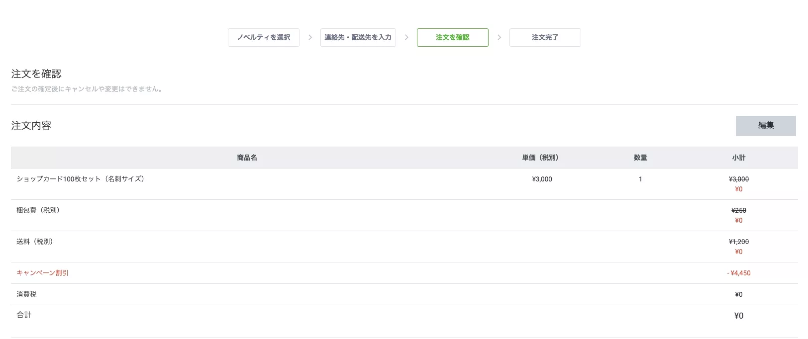 5.ご注文内容と、代替品の対象商品および梱包費と送料が0円になっていることをご確認ください