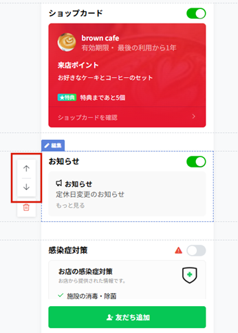 4 選択したパーツが「ビジネスプロフィールページ設定」画面に追加されます