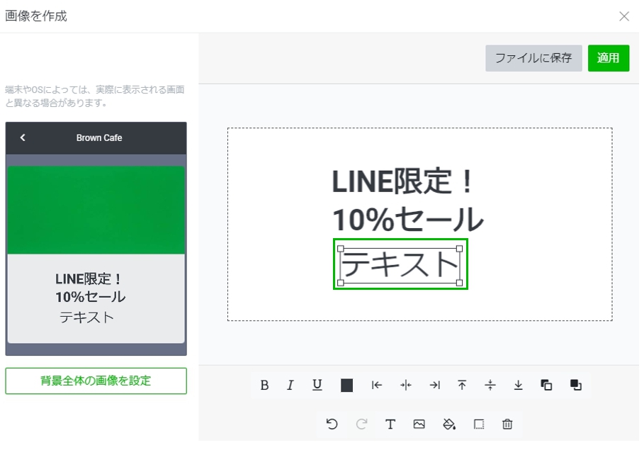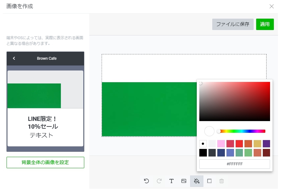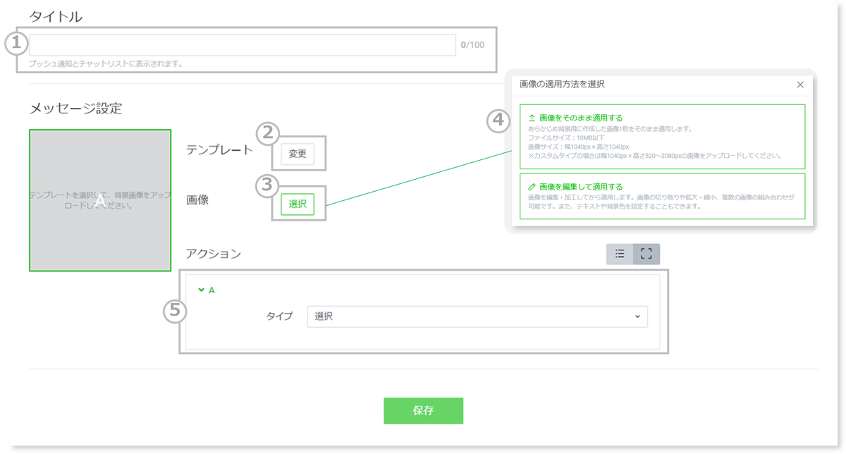 ※作成されたリッチメッセージ、リッチメニューの画像は、LINE公式アカウントの管理画面と連携していない為、一度ダウンロードして保存いただく必要があります。