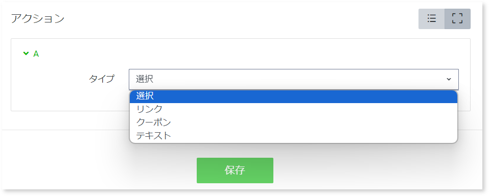 テンプレートの該当箇所に従い、誘導アクションを選択します。
