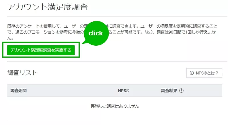 「アカウント満足度調査」を作成します。リサーチメニューから「アカウント満足度調査」をクリック