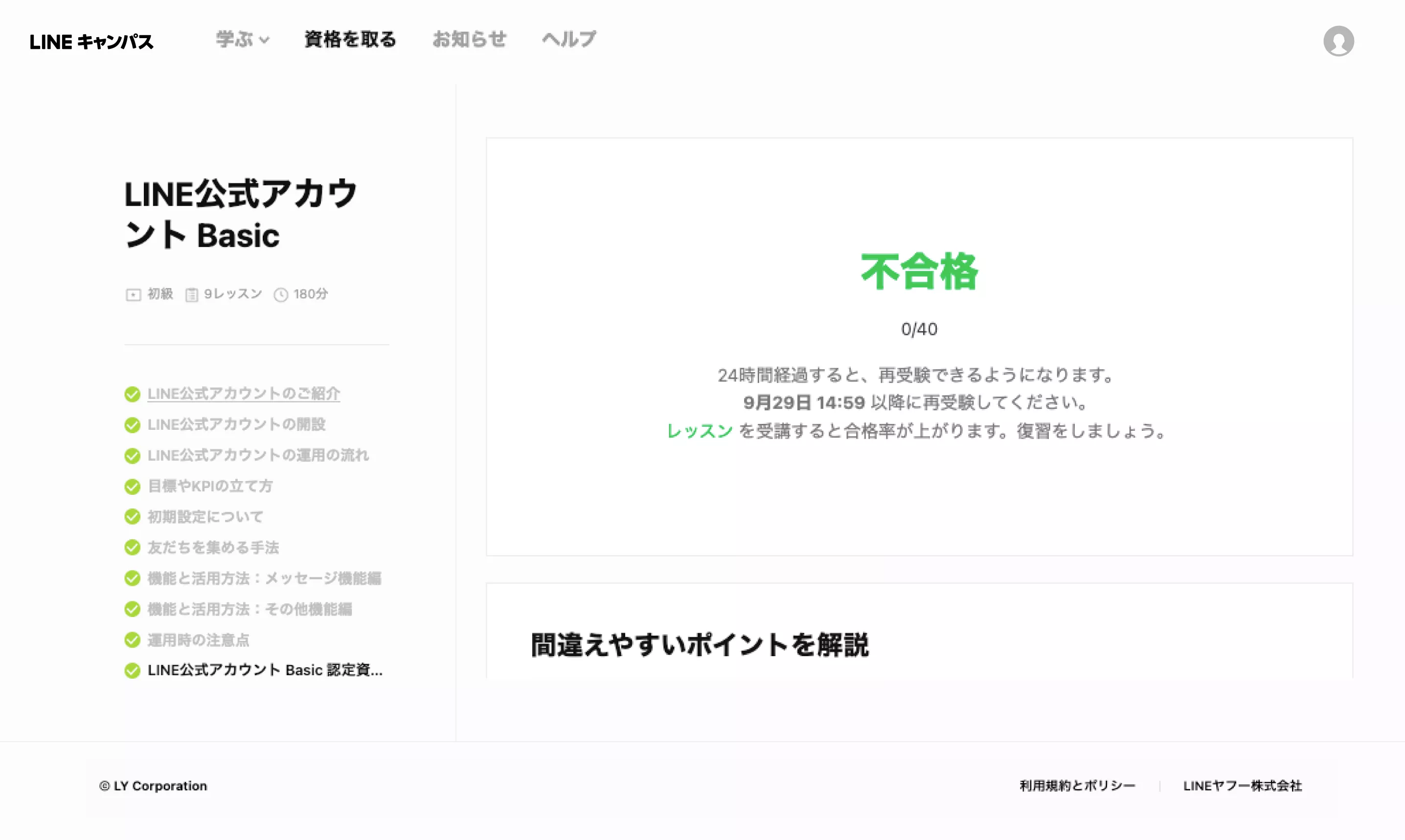 認定資格を受験して不合格だった場合