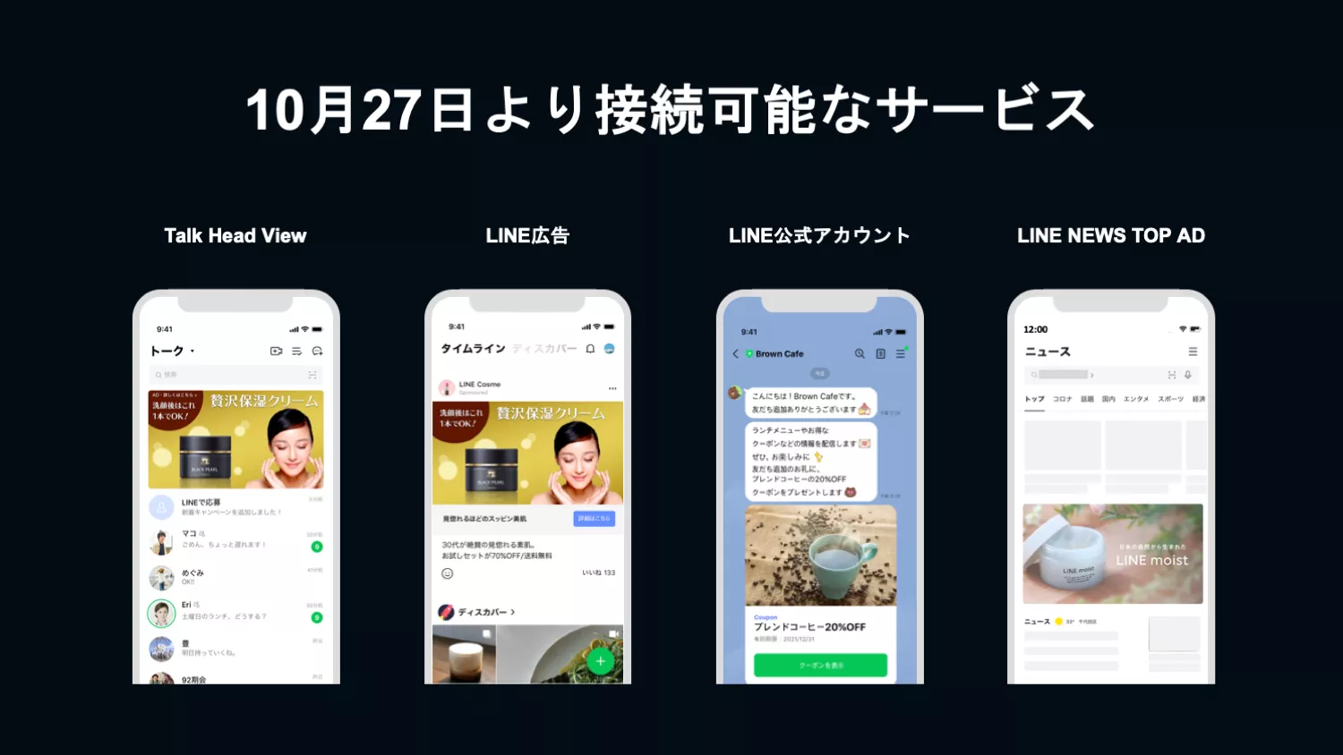 10月27日よりTalk Head View、LINE公式アカウント、LINE広告、LINE NEWS TOP AD間のデータが連携可能に