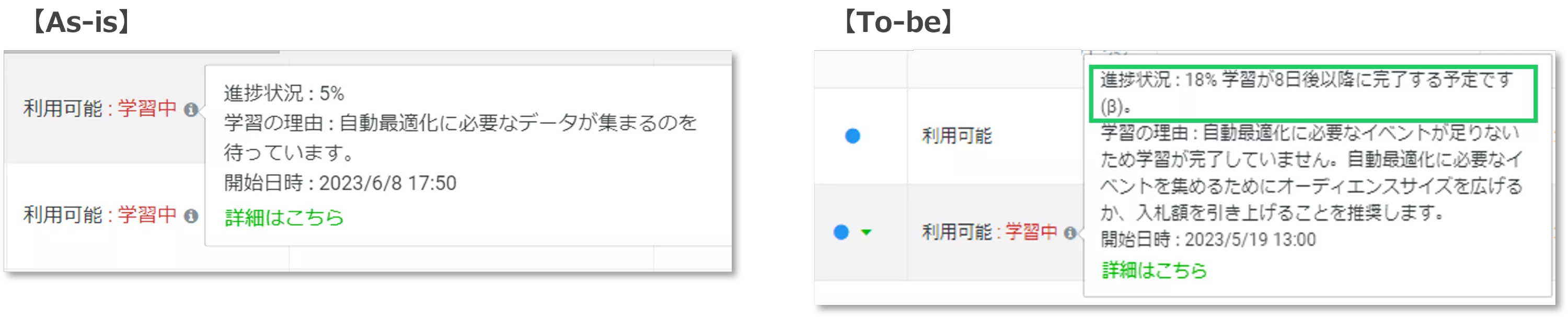 広告グループにおけるステータス学習中の進行状況の表示方法が変更されました。