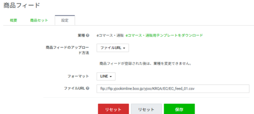 ・リセットされると商品情報が削除されるため、配信中のLINE Dynamic Adsが停止します