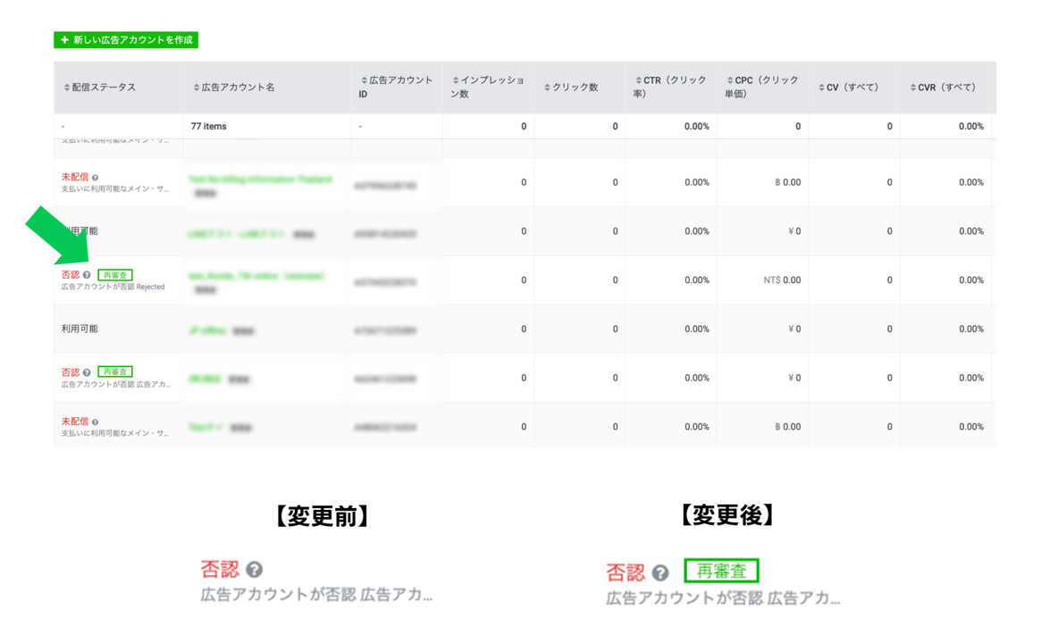 4.否認アカウントへの審査否認関連の文言やリンクの追加