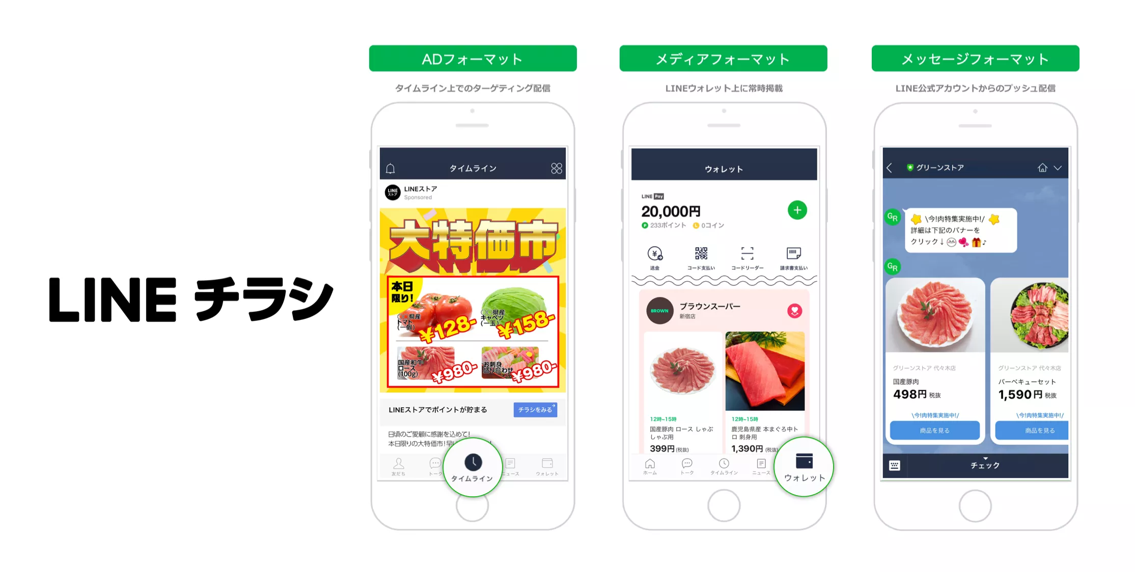 ■ターゲットや目的に応じて選択可能な3つのフォーマットを提供する「LINEチラシ」