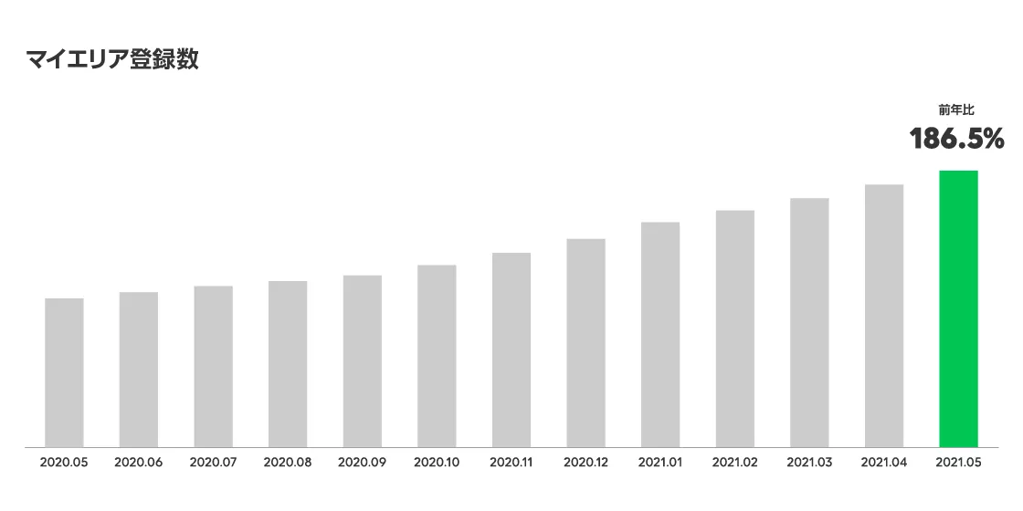 マイエリア登録者数は前年比約186%、PV数は前年比約176%と大幅増加