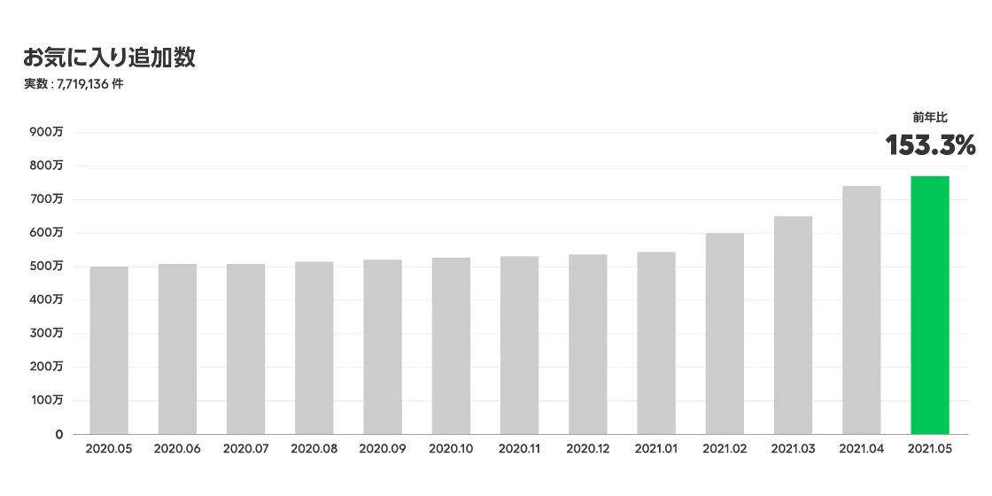 加えて、お気に入り追加数は約772万店舗で前年比約153%増、ウォレットタブなどからアクセスできる「チラシメディア」のPV数は前年比約176%増と、「LINEチラシ」を日常的にお使いいただいているユーザーが増加しています。