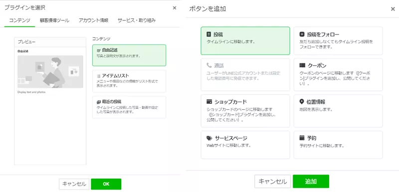 プラグインおよびボタンの追加時に設定したい内容を選択しやすいよう、設定画面を変更しました。あわせて、一部のプラグイン名も変更しています。