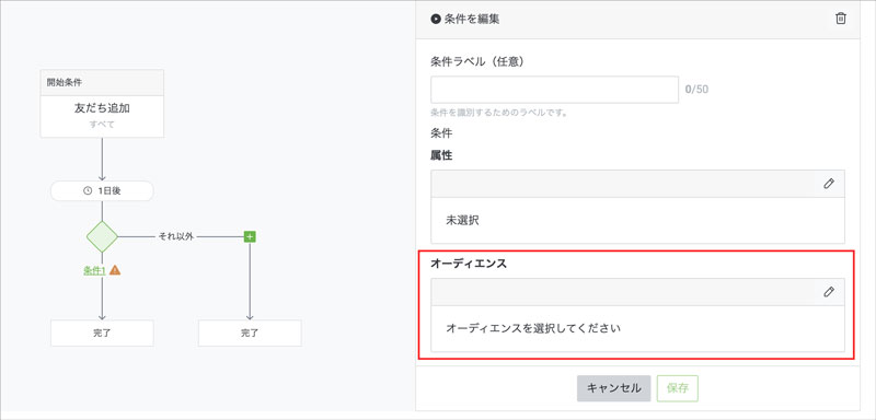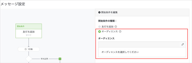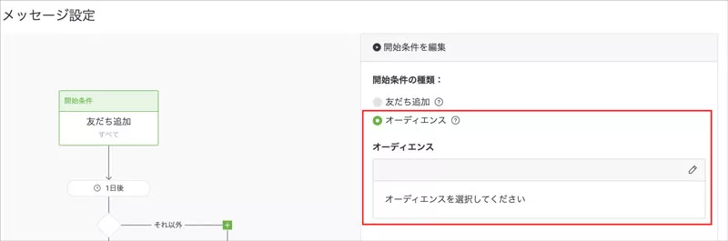 開始条件と配信条件の分岐に「オーディエンス」が追加可能に