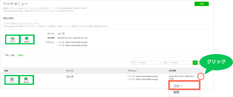ちょっと修正したいとき、画像や設定内容ごとにリッチメニューを管理したいときなど、コピー機能をご活用ください!