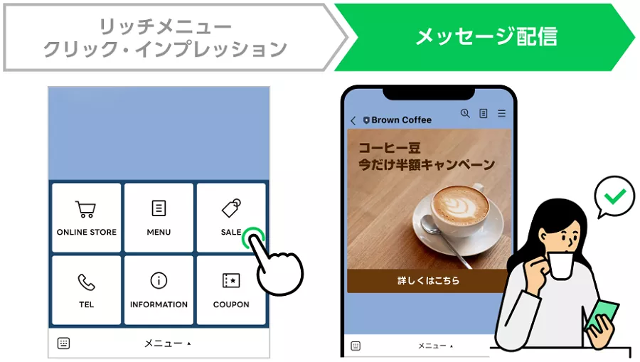 リッチメニューを表示した友だちをターゲティングして、メッセージ配信が可能
