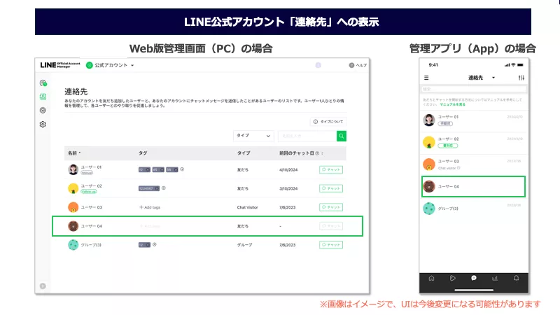 ①アカウントを友だち追加したユーザーの情報(※1)を、LINE公式アカウントのオーナーが確認できます。