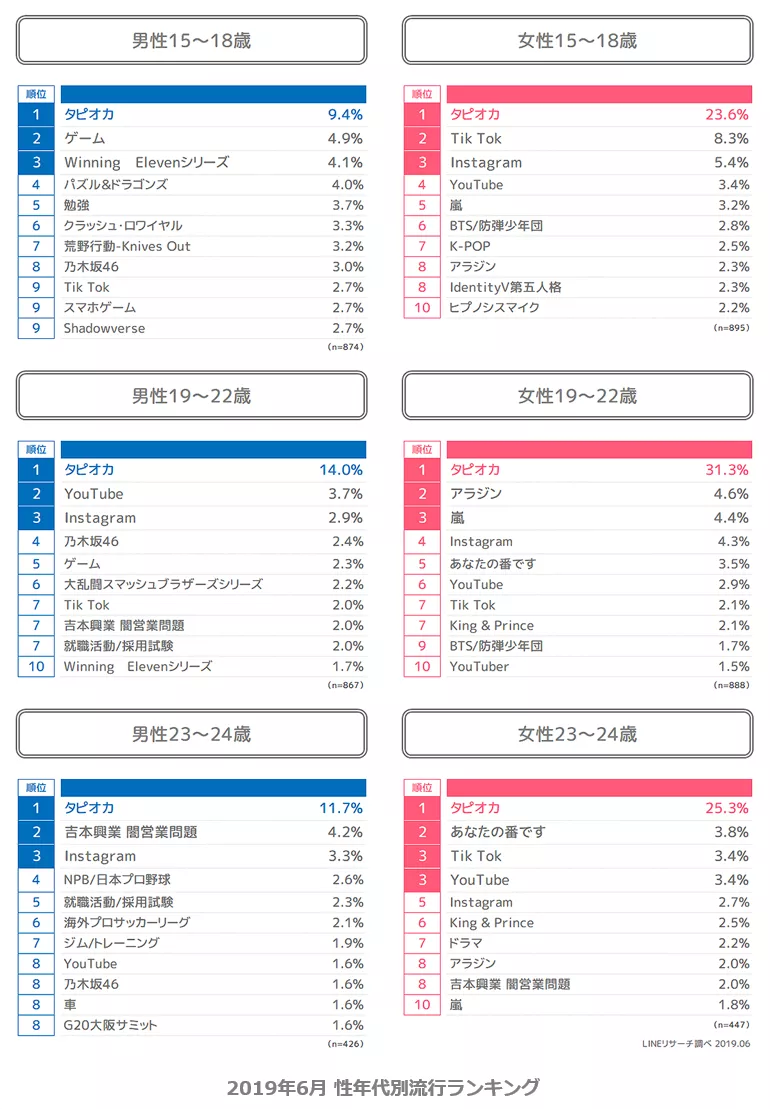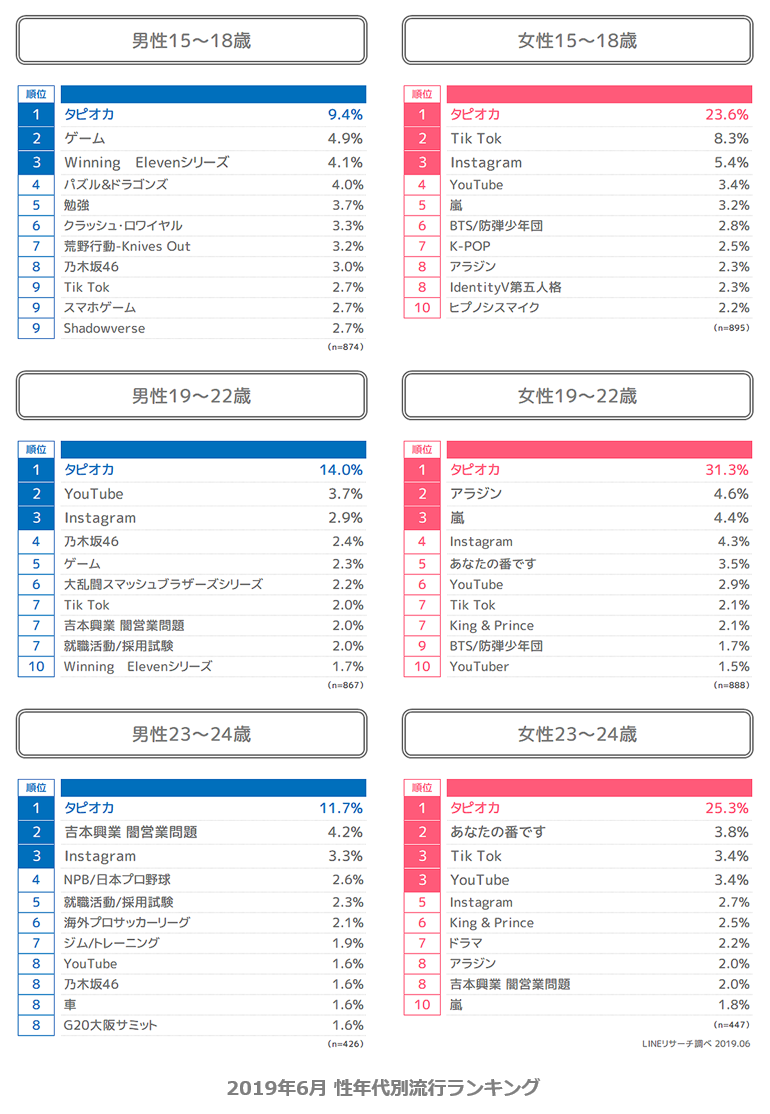 ・2019年上期の若年層流行、男女ともに「タピオカ」が圧倒的1位