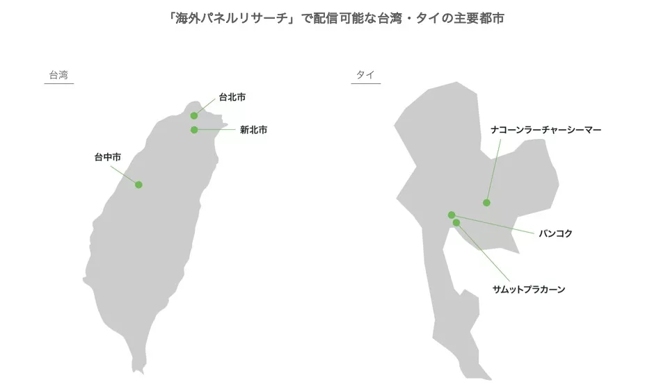 各国の主要都市を中心に、台湾約45万人、タイ約133万人の豊富なパネルを保有 居住地域を指定した生活者実態調査やブランド調査などが可能に
