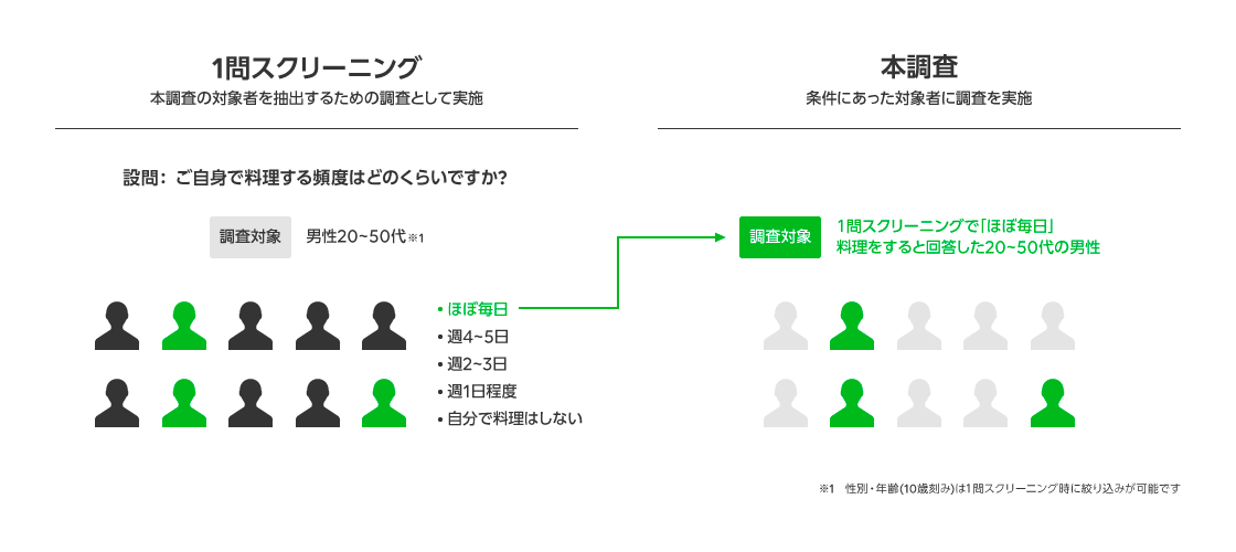 ・「1問スクリーニング」機能で「ほぼ毎日料理をする20-50代の男性」を抽出*5