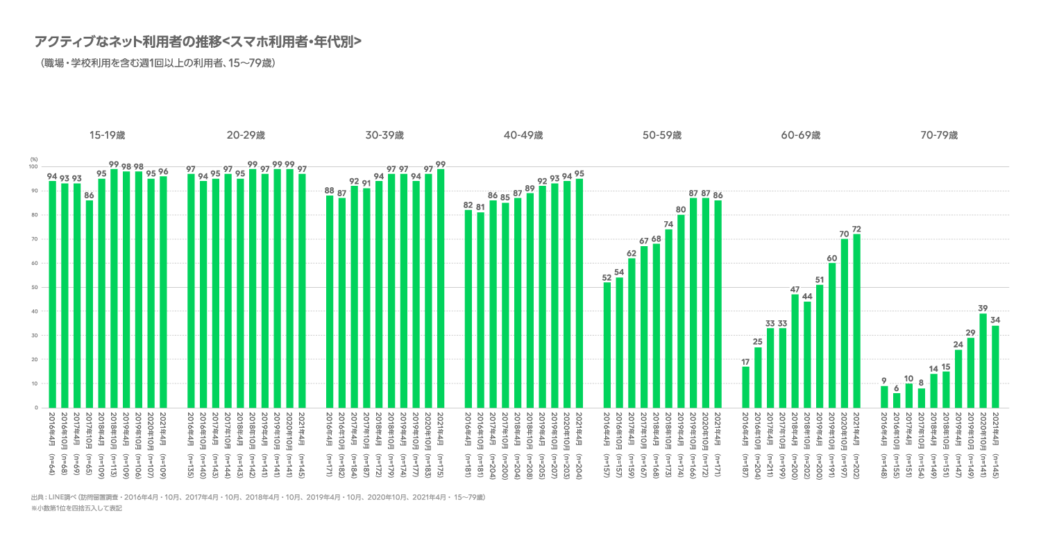 LINEでは、インターネットのコミュニケーションインフラの一翼を担う会社の責務として、よりよいサービス提供のためにさまざまな調査研究を行っております。その一環として、2016年4月より半期に一度スマートフォン等でのインターネット利用に関する定点調査を行っています。このたび、2021年上期の調査結果をお知らせいたします。