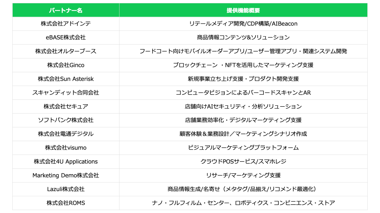 本プロジェクトへの参画パートナーを通じた小売向けソリューションの企画及び開発支援を実施する