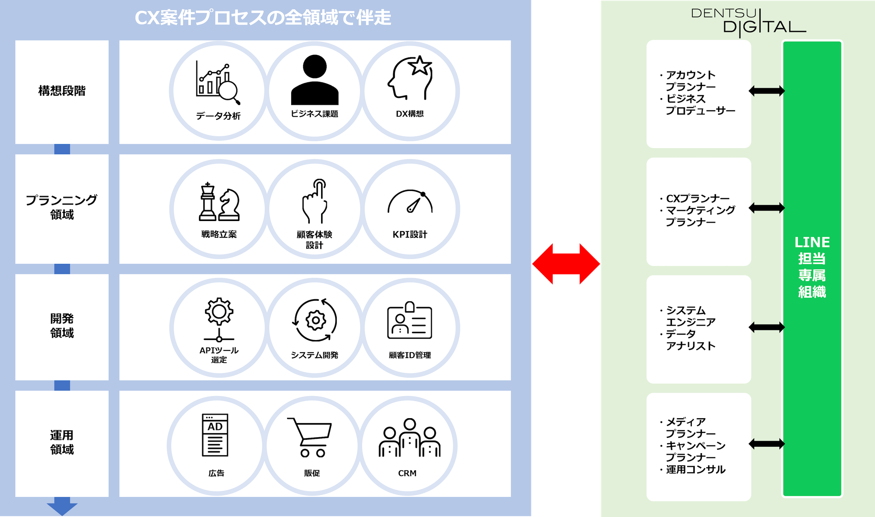 戦略立案から運用まで、一気通貫でCX領域をサポートできる体制