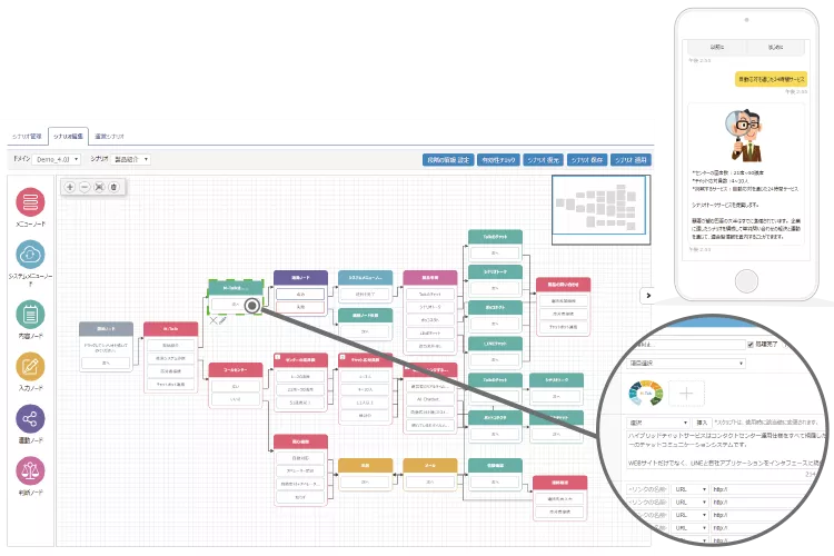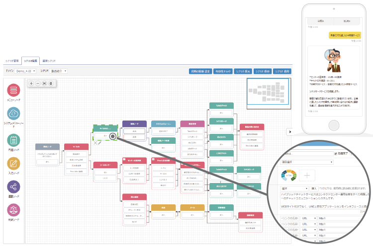 AI/Chatbotの回答精度による課題を解決するため、AI応答状況をセンター側でサポートする機能を搭載(AI連携を前提としたインターフェース)。