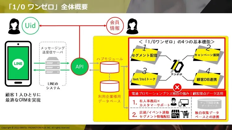 「1/0 ワンゼロ」はオンライン・オフラインにまたがるあらゆる顧客接点データを活用し、顧客1人ひとりに最適なCRMを実現します。