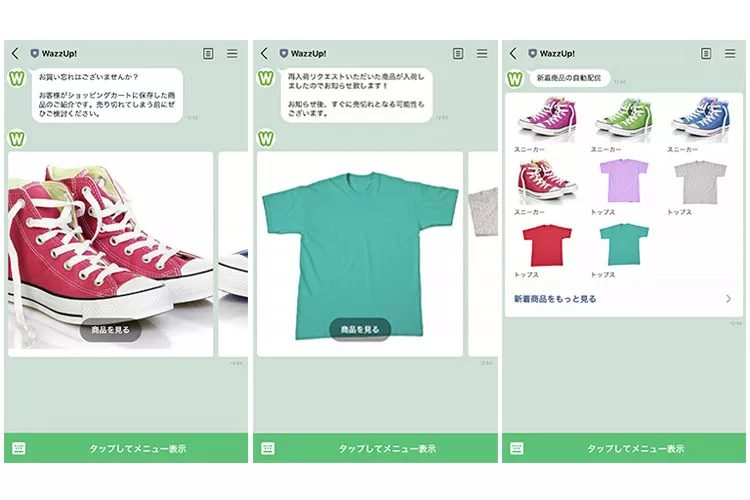 手動でメッセージを作成して、好きな項目で出し分け可能な「セグメント配信」という機能以外、ワズアップ!の配信はすべて自動です。通販サイトに商品さえ登録すれば、自動で商品情報を取得してLINEの配信まで完全自動で配信します。