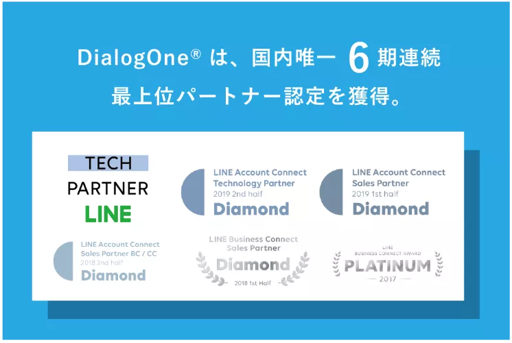 それらの功績が認められ、Hakuhodo DY ONEはTechnology PartnerとしてDialogOne®提供開始当初から、認定を受けています。また2020年まで開催されていた、「LINE Biz Partner Peogram」のコミュニケーション部門において、最上位である”Diamond”パートナーとしてLINEヤフー社に認定されており、パートナー企業で唯一6期連続で最上位を受賞。