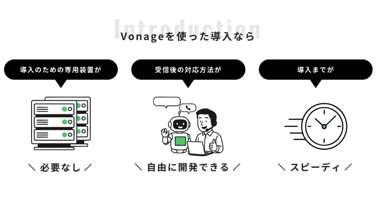 Vonageを使えば、専用のハードウェアいらずでLINEとの接続が可能に。導入コストや運用コストを抑えながら、LINEコールPlusを迅速に導入できます。