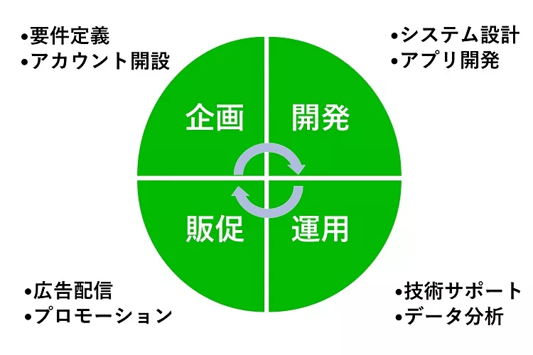 LINE APIを活用したアプリケーションの設計、開発、運用保守、プロモーションなどをワンストップで提供します。