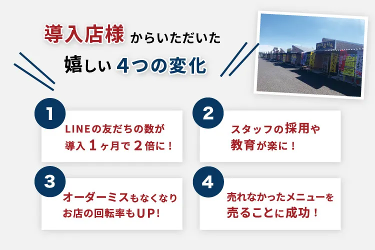 また、人手不足の問題や、注文をあちらこちらから呼ばれて大忙しだった業務も軽減し、お客様への料理提供スピードが上がり回転率が向上したり、メニューをタイムリーに更新して写真付きで見てもらうことで客単価アップにも繋げることができ、コロナ渦でも過去最高の売上を上げた店舗もありました。