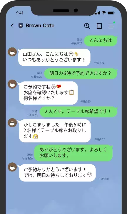 ユーザーからの問い合わせに対して、LINEのトークと同じように直接コミュニケーションができます。自動応答の設定も可能です。