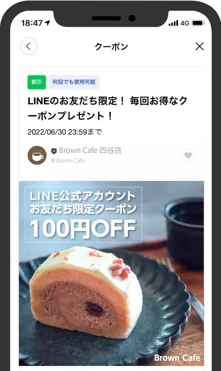 店舗で使用できるクーポンを作成し、メッセージとして配信することができます。