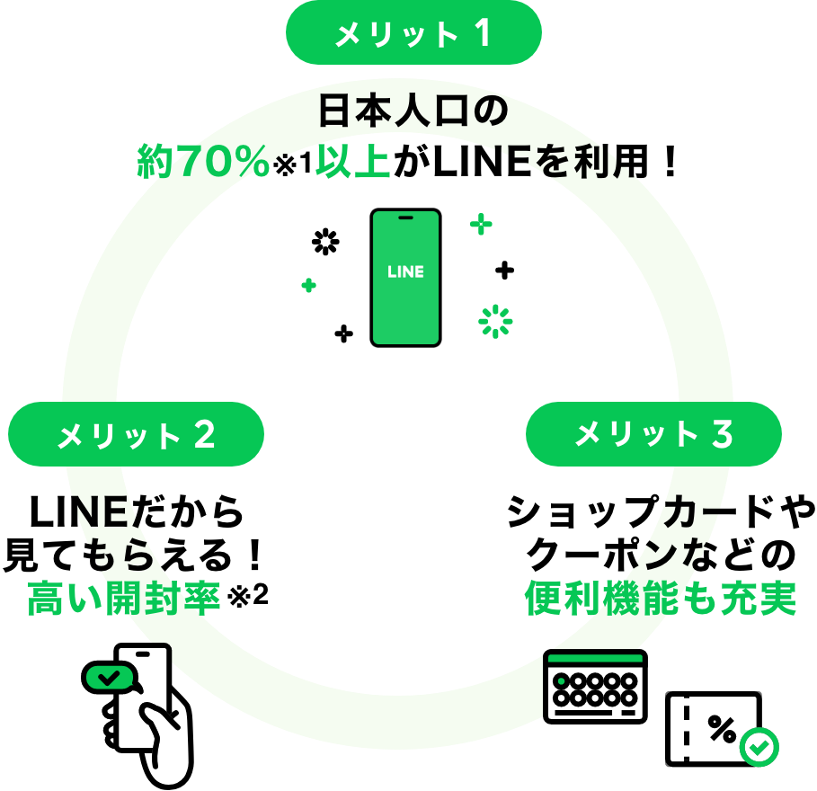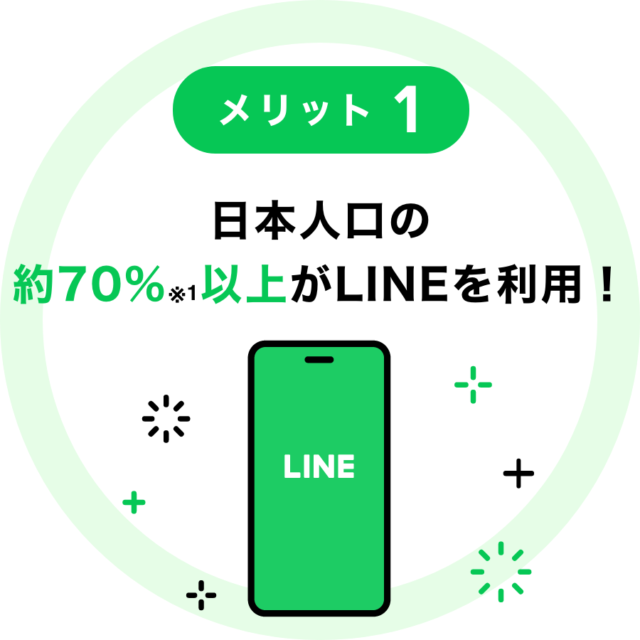 ※1 1 LINEの国内月間アクティブユーザー 9,900万人÷日本の総人口1億2508万2000人(2022年8月1日現在[確定値] 総務省統計局)