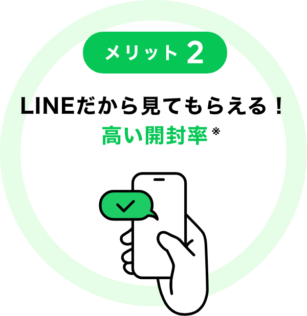 「LINE」のトーク画⾯から、店舗や企業のアカウントの友だちになったユーザーに対して、メッセージを届けることができます。国内MAU9,900万人※の「圧倒的なリーチ⼒」と、コミュニケーションアプリの特徴を活かした「One to Oneコミュニケーション」により、効率良くユーザーとの深いつながりを実現することが可能です。※ 2025年6月末時点