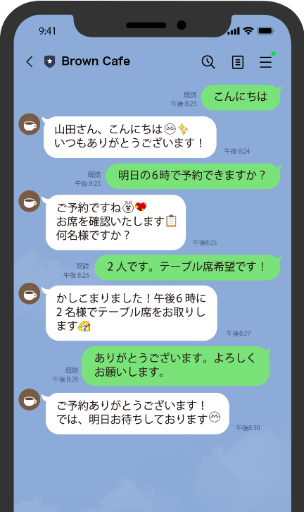 ユーザーからの問い合わせに対して、LINEのトークと同じように直接コミュニケーションができます。自動応答の設定も可能です。