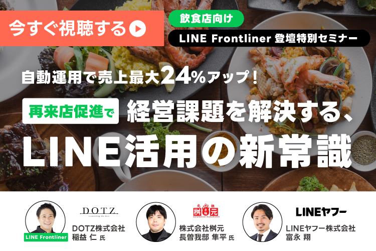 • 【録画配信】LINE公式アカウントの自動運用で売上最大24%アップ!再来店促進で経営課題を解決する、飲食店のLINE活用の新常識