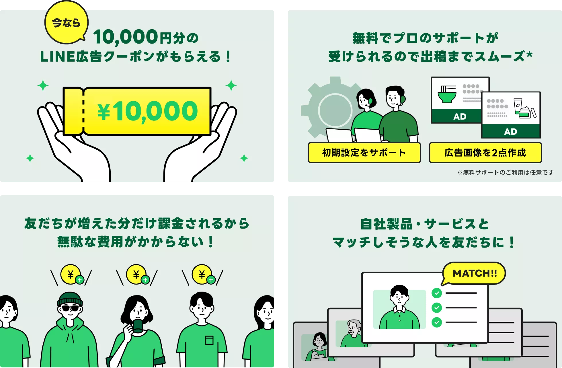 LINE広告で使用できる1万円分のクーポンをプレゼントいたします。