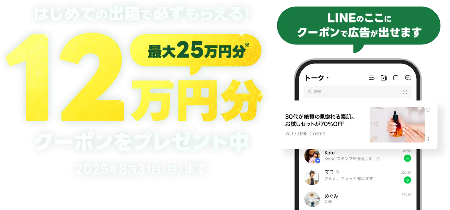 LINE広告を出稿開始してクーポンを手に入れよう! ※メールでクーポンコードをお送りします