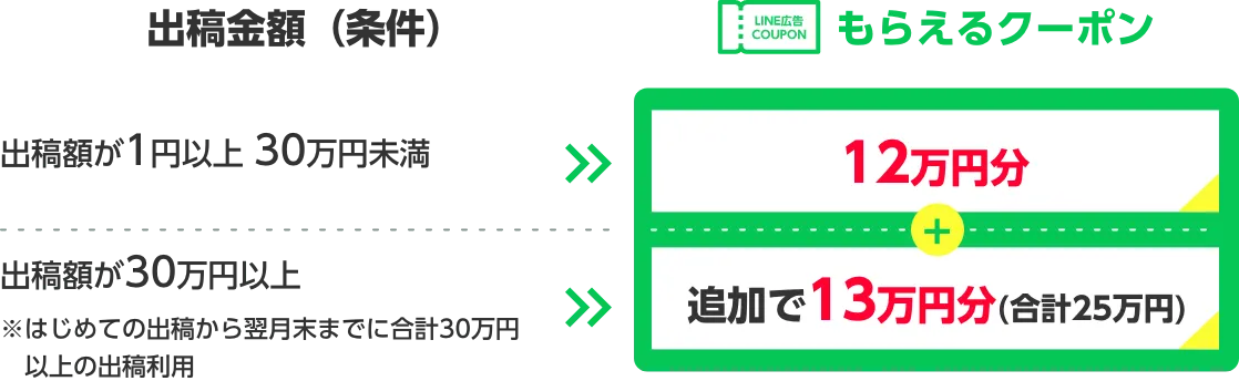 更に出稿開始した月の翌月末までに30万円以上ご利用いただくと、
