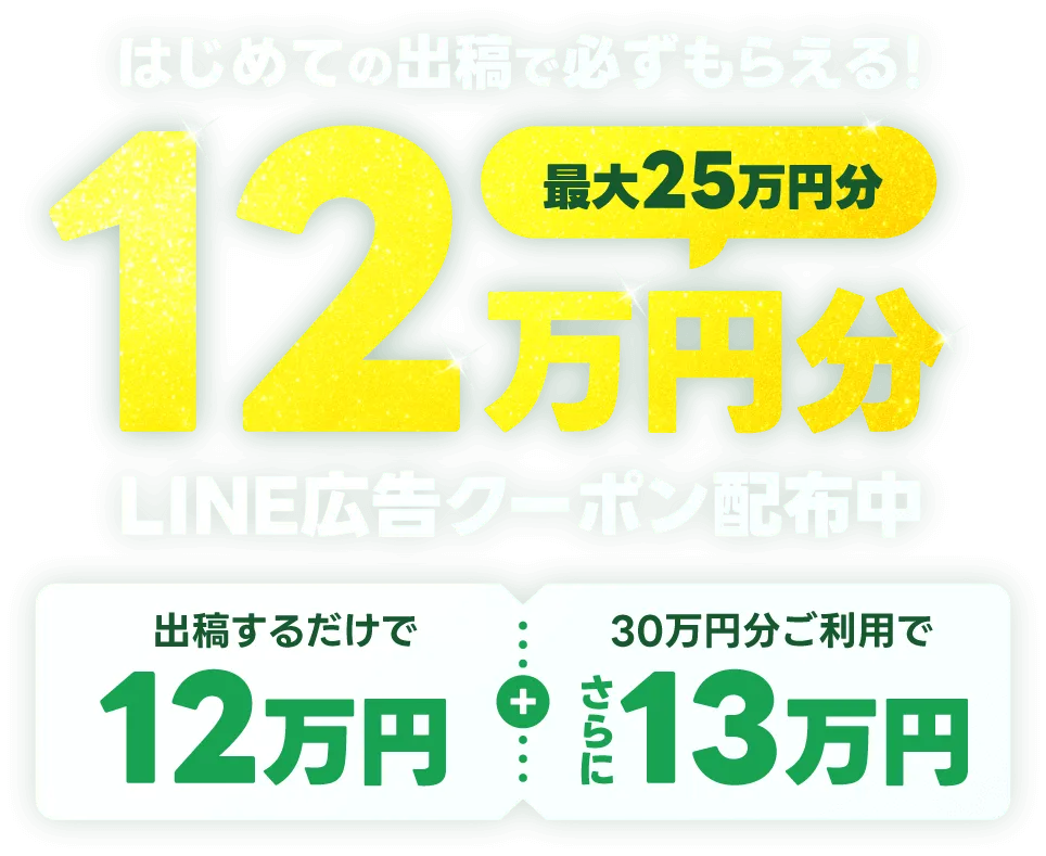 はじめて広告出稿(1円以上)されると、12万円分のクーポンを