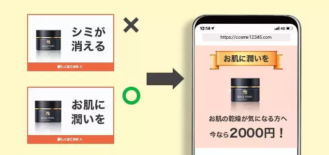 詳細は、広告・ランディングページ(遷移先)作成の注意点 -基礎編- をご覧ください。
