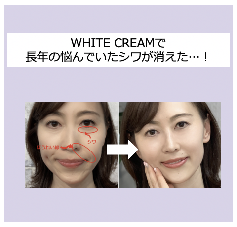 ※使用することによって、メーキャップ効果によるほうれい線、シワが見えなくなる(隠せる)という表現は可能。