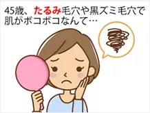 シミ、シワ、ニキビなどの症状を過度に強調した写真など