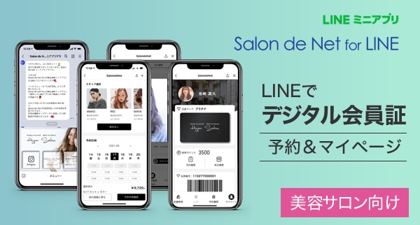サロン向けのリピーターを増加させる各種機能を有したLINEミニアプリのパッケージシステムです。LINEでの予約は、大手5つのポータルサイト連携が可能となっています。