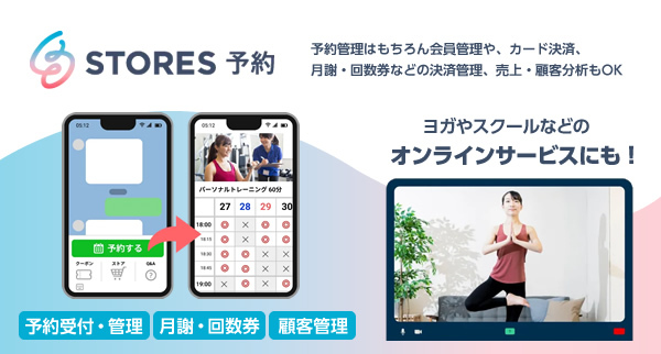 LINE上で誰でもかんたんに予約をはじめられ、予約管理はもちろん、会員管理や、カード決済、月謝・回数券などの決済管理、売上・顧客分析も可能なサービスです。サポートも充実しています。