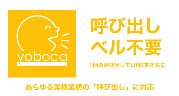yobocaは、呼び出し通知に特化したLINEミニアプリです。主に商品の準備が整ってから呼び出しをしている業種に最適なシステムです。