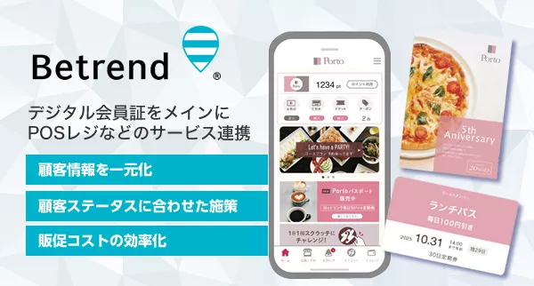 来店スタンプ・ポイント・クーポン・店舗検索などの機能をはじめ、POSレジ・券売機・ECサイトなど外部サービスとの連携にも対応しています。