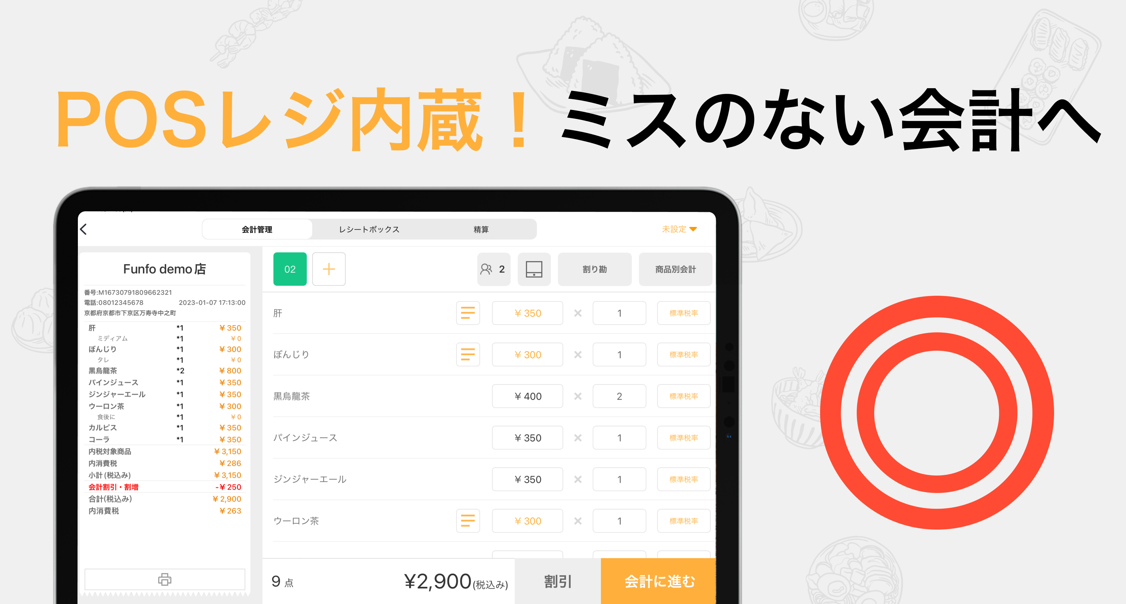 - どんな方でも直感的に操作できるPOSレジ機能を標準搭載しており、現場のオペレーションをさらにシンプルにします。