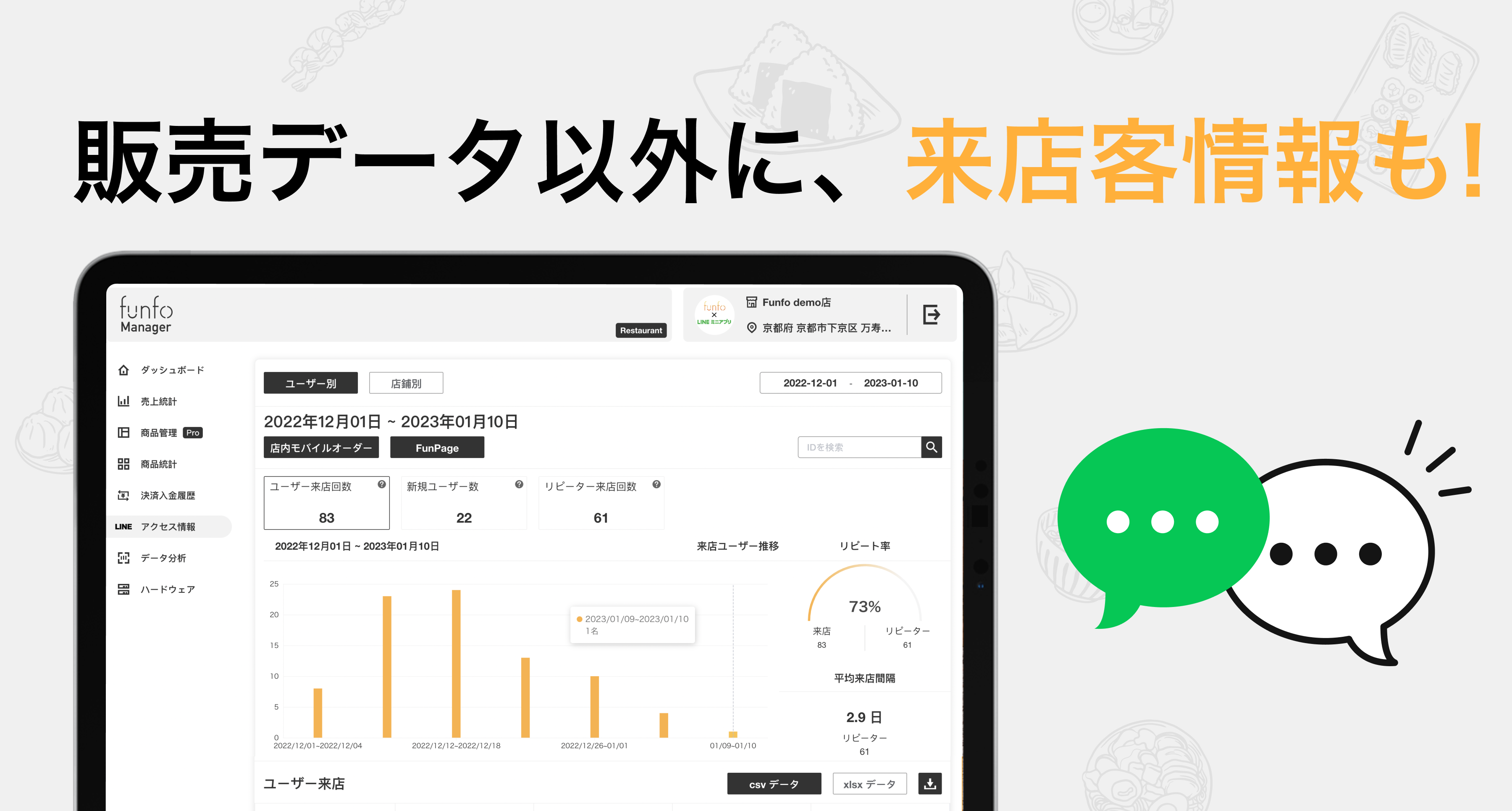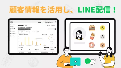 - LINEと連携したPOS機能でお客様の来店回数や過去の注文データを取得。お客様ひとりひとりに合わせたメッセージ配信が可能です。